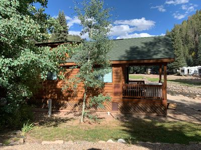 This cabin will sleep a maximum of FOUR people. It has a full kitchen, living room, bathroom with shower/tub, one private bedroom with 1 queen bed. The loft has a twin and double mattress. This cabin sits along the Dolores River.