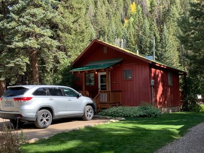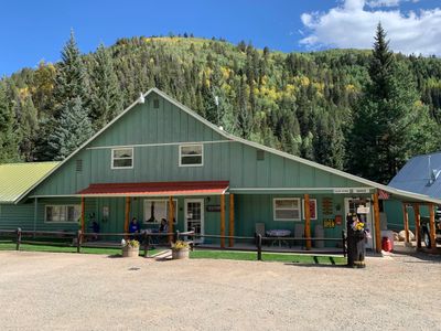 The back porch faces both the Priest Gulch Creek and Dolores River.